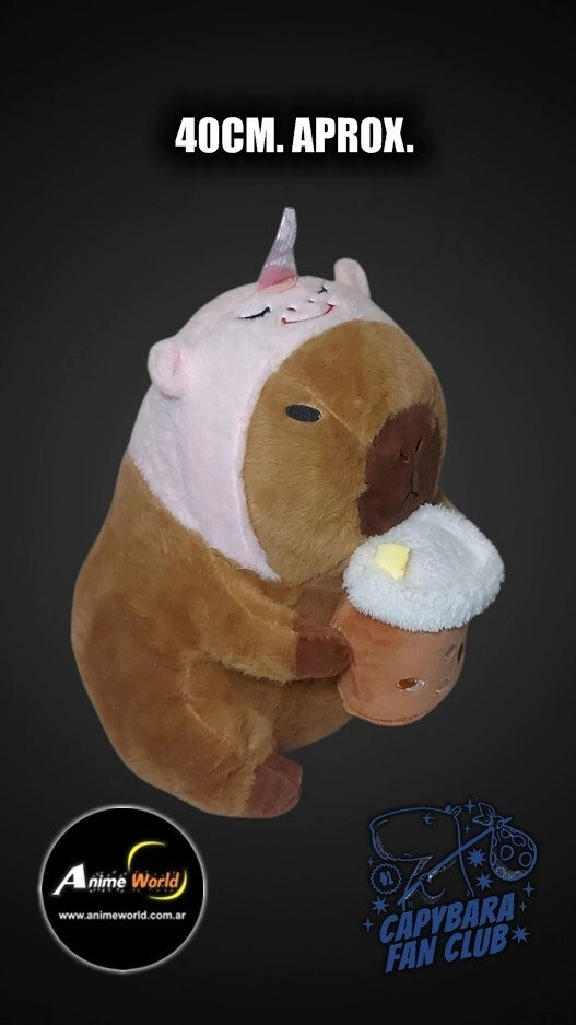 PELUCHE CARPINCHO-CAPIBARA DISFRAZ UNICORNIO CON NUEZ GRANDE (40CM APROX) SW13031-22 (P2090)
